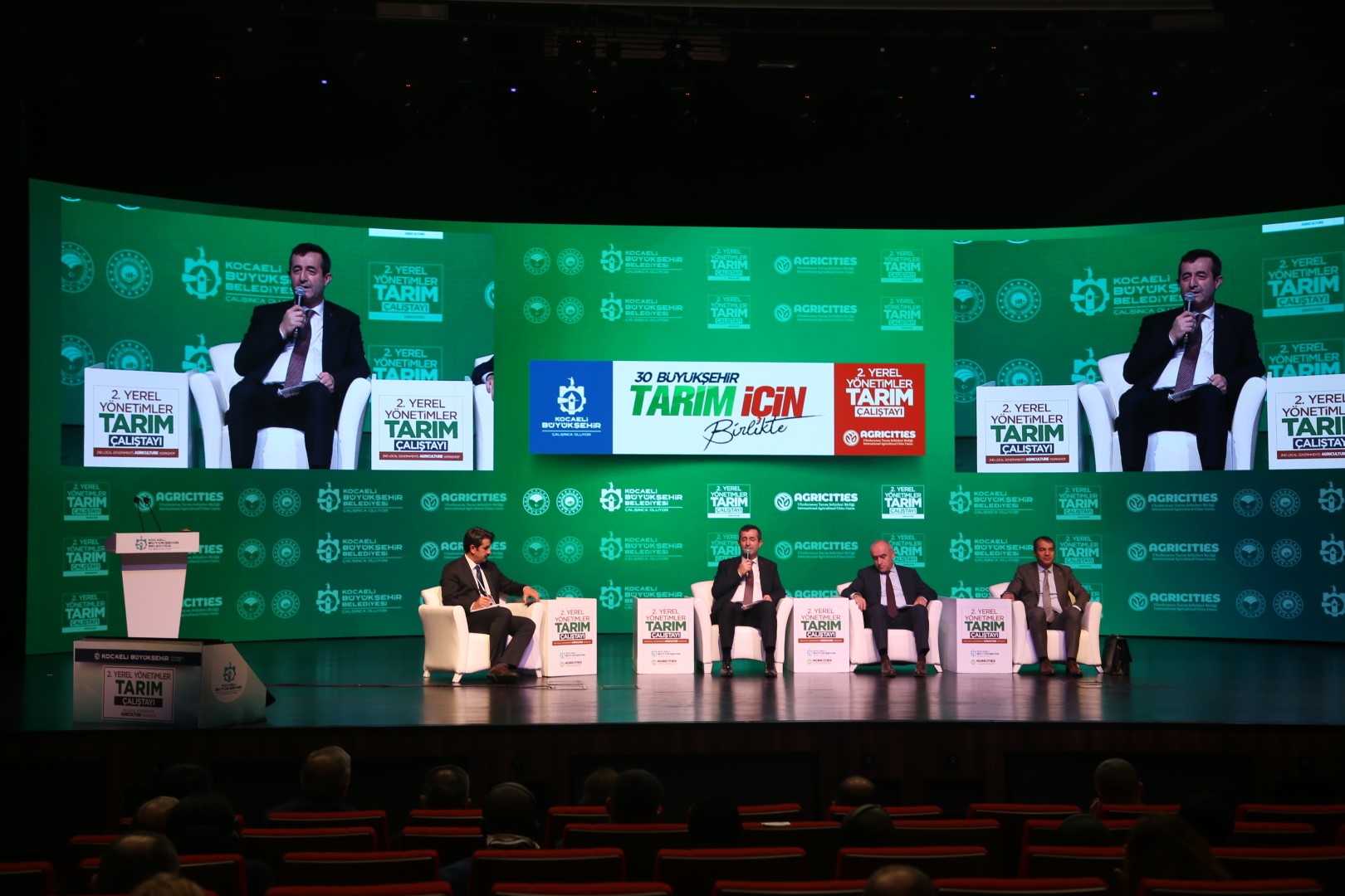 Kocaeli Büyükşehir Belediyesi ev sahipliğinde düzenlenen 2. Yerel Yönetimler ve Tarım Çalıştayı'nda yapılan oturumlarda konuşan Tarım ve Orman Bakanlığı genel müdürleri, bakanlığın tarım ve hayvancılık politikasını anlattı. AGRITICIES Genel Sekreteri Mücahit Sami Küçüktığlı'nın moderatörlüğünde düzenlenen oturumda Tarım ve Orman Bakanlığı Bitkisel Üretim Müdürü Mehmet Hasdemir, 2022 yılında Türkiye'de tüm zamanların üretim rekorlarının kırılacağını söyledi.