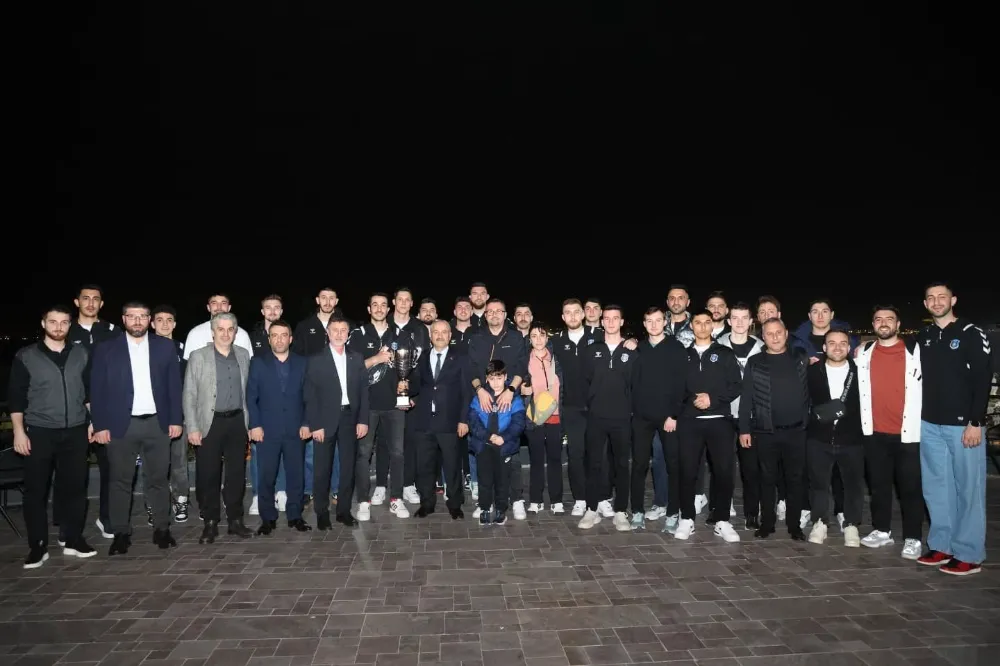 Bizlere bu gururu ve coşkuyu yaşatan hocamıza, yöneticilerimize, siz değerli sporcularımıza tüm emek veren herkese şükranlarımı sunuyorum. Bilinen bir şey var ki; güçlü erkeklerin arkasında dirençli güçlü hanımefendiler vardır. Bu başarıdaki paylarından dolayı da siz değerli hanımefendilere de ayrıca teşekkürlerimi sunuyorum. Federasyon As Başkanımızla salonda sohbet etme imkanım oldu. Kuruluş tarihinden 4 sene sonra süper lige, Efeler Ligi’ne çıkan başka bir takım olmadığını ve Gebze’nin de bu konuda bir ilki başardığını öğrendim.