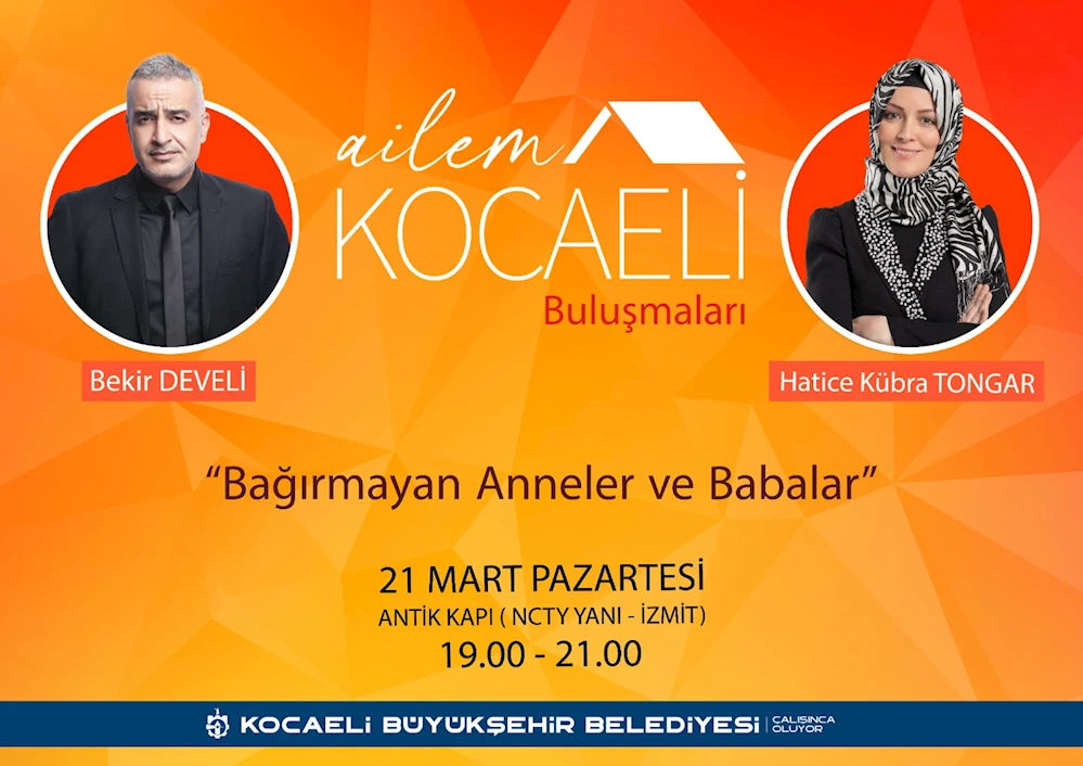 Kocaeli Büyükşehir Belediyesi kadın, çocuk ve ailelere yönelik verdiği hizmetlere bir yenisini daha ekliyor. Kadın ve Aile Hizmetleri Şube Müdürlüğü’nün organize ettiği Ailem Kocaeli Buluşmaları, 21 Mart Pazartesi günü 19.00-21.00 arasında Antikkapı’da Hatice Kübra Tongar ve Bekir Develi’nin katılımıyla gerçekleşecek.