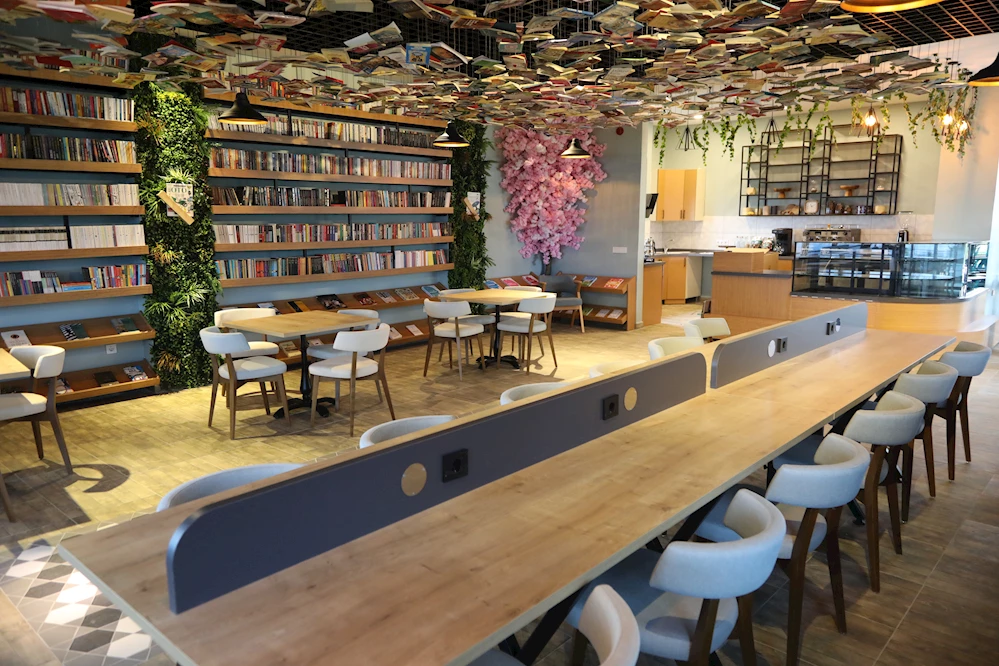 Çevre düzenlemesi ile birlikte yaklaşık 5 dönüm arazi üzerinde kurulan ve 718 m2 kapalı alan olan kültürel tesisin 442 m2’si kütüphane, 276 m2’si kitap kahve olarak hizmet verecek.