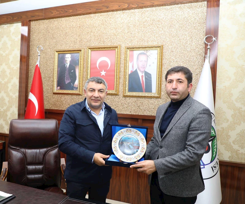 Başkan Şayir ve konuk Başkan Çelik ziyaret sonunda karşılıklı olarak günün anısına birbirlerine hediye takdim ettiler.