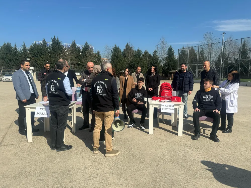 Düzenlenen etkinliklerde deprem tatbikatı uygulamalı olarak katılımcılar ile paylaşıldı. Tatbikat senaryosuna göre, deprem anında öğrenciler ve öğretmenler güvenli alanlarda “Çök-Kapan-Tutun” hareketini gerçekleştirdi. Depremin bitmesiyle birlikte tahliye süreci başlatılarak, öğrenciler sınıflarını güvenli ve düzenli bir şekilde boşalttı. Tatbikat sonucunda afet ve acil durum hazırlıklarının iyileştirmesi noktasında alınması gereken önlemler değerlendirildi.