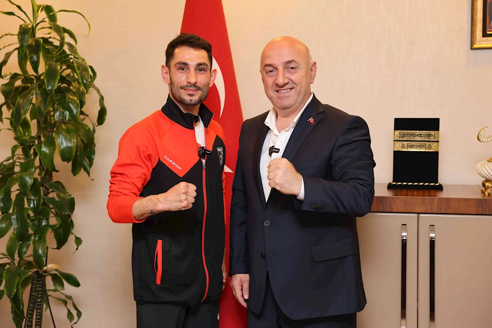 Japonya’da gerçekleşecek dünyanın en büyük organizasyonlarından biri olan K1 Word GP’de ringe çıkacak Darıca Belediyesi Eğitim ve Spor Kulübü’nü şampiyon kick boksçusu Emre Karaca, şampiyona öncesi Darıca Belediye Başkanı Muzaffer Bıyık’ı ziyaret etti.
