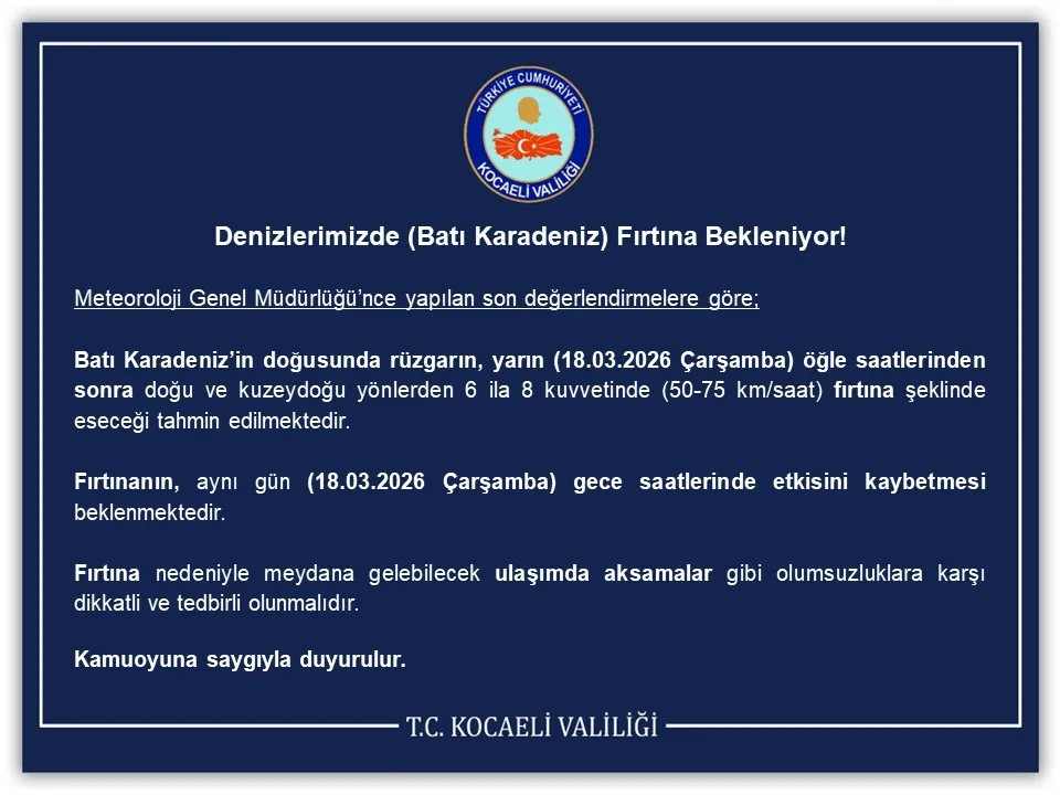 Fırtınanın, aynı gün (18.03.2026 Çarşamba) gece saatlerinde etkisini kaybetmesi