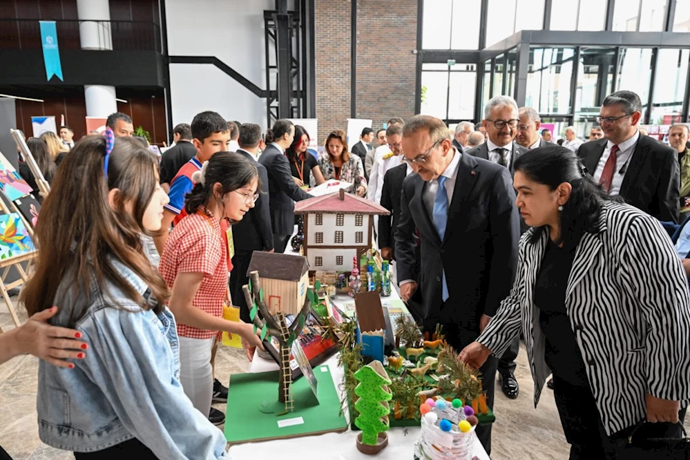 eğitim müdürlüklerinin yıl içinde önem projesi etkinlik görsellerinin yer aldığı alanı gezerek yapılan