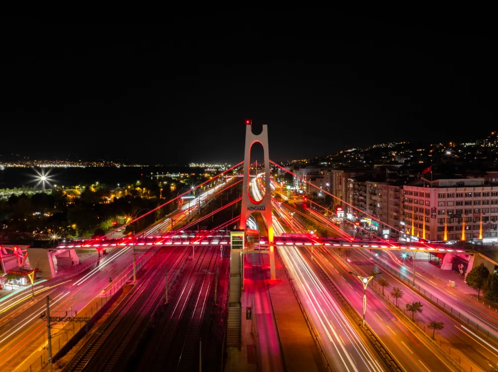 Vatan sevgisinin simgesi olan Türk bayrağından ilham alınarak gerçekleştirilen ışıklandırma çalışması, Kocaeli’ye hem estetik bir dokunuş kattı hem de duygu yüklü bir atmosfer oluşturdu. Gece boyunca şehrin kalbinde parlayan kırmızı ve beyaz ışıklar, gökyüzünü adeta bir bayrak gibi süsledi.
