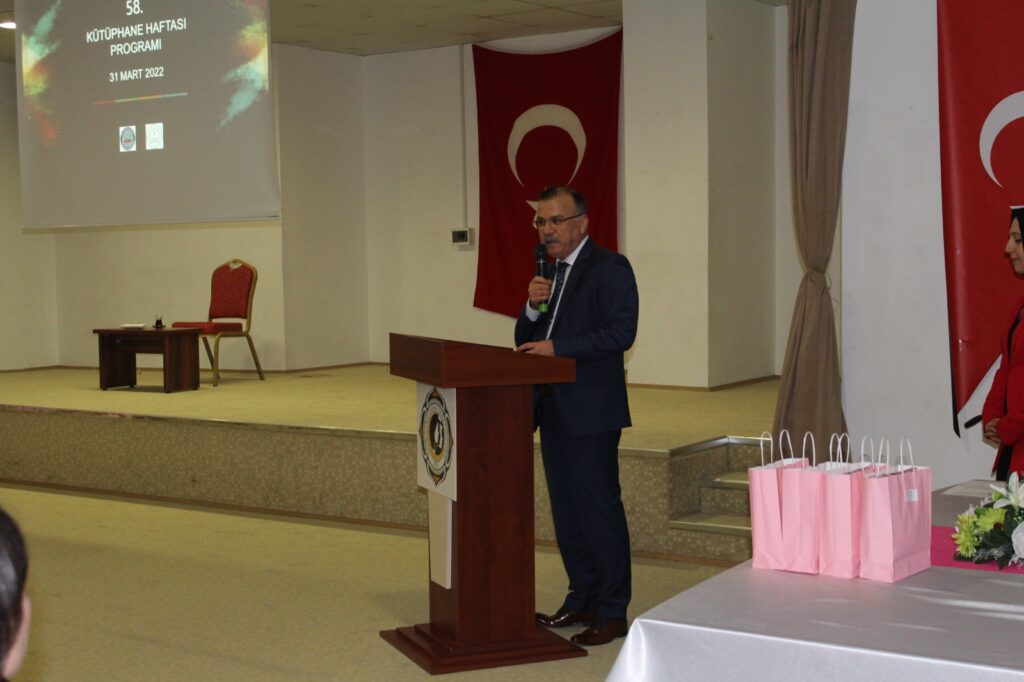 Çayırova İlçemizde de 'Kütüphaneler Haftası' Çayırova Kız Anadolu imam Hatip Lisesi/Ortaokulu Konferans Salonunda öğretmen ve öğrencilerin hazırlamış olduğu çeşitli etkinliklerle kutlandı. Salon girişinde öğrencilerin çizmiş olduğu resim, kitap kapağı tasarımları ve el yapımı ayraç sergisinin gezilmesine müteakip program saat 13.30’da saygı duruşu ve İstiklal Marşı'nın okunmasıyla başladı. Okul müdürü Zeki TUNCER’in açış konuşmasının ardından İlçe Kaymakamımız Sayın Hasan GÖZEN, kitabın, yazarın ve kütüphanenin önemini anlatan bir konuşma gerçekleştirdi. Açış konuşmalarını takiben içerisinde şiir, tiyatral gösteri ve hediyeli yarışmaların olduğu, ilginç dünya kütüphanelerinin ve okudukları kitapları kısaca tanıtan öğrenci slayt/videolarının gösterildiği bir dizi etkinlik gerçekleştirildi. Ayrıca Çayırova Halk Kütüphanesinden Fatma Nur ŞALE hanım kütüphanenin tanıtımını ve çalışma düzenini anlatan bir konuşma gerçekleştirdi. Hem protokol hem de öğrenci velilerinin ilgi gösterdiği programın öğretici ve eğlendirici yanının ağır bastığı dikkatlerden kaçmadı. Program sonunda İlçe Kaymakamımız Hasan GÖZEN ve protokol üyeleri etkinliklerde görev alan öğretmen ve öğrenciler ile hatıra fotoğrafı çektirdi.