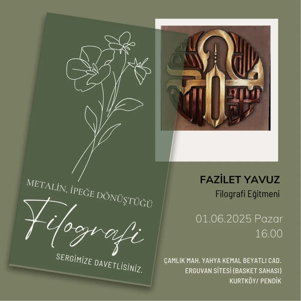 Pendik’de yaşayan ev hanımlarından anlamlı bir sergi. Filografi Eğitmeni Fazilet Yavuz ve kursiyerlerinin filografilerinden oluşan “Metalin,ipliğe dönüştüğü Filografi” adlı sergideki satış gelirinin bir büyük kısmı Gazze’ye bağışlanacak.