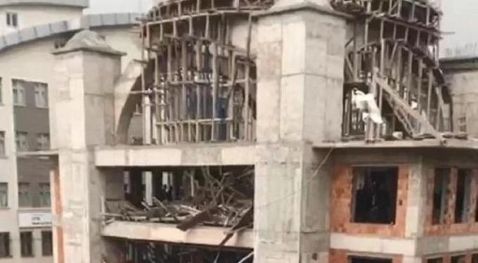 Sarı Cami Kubbe İnşaatında İskele Çöktü