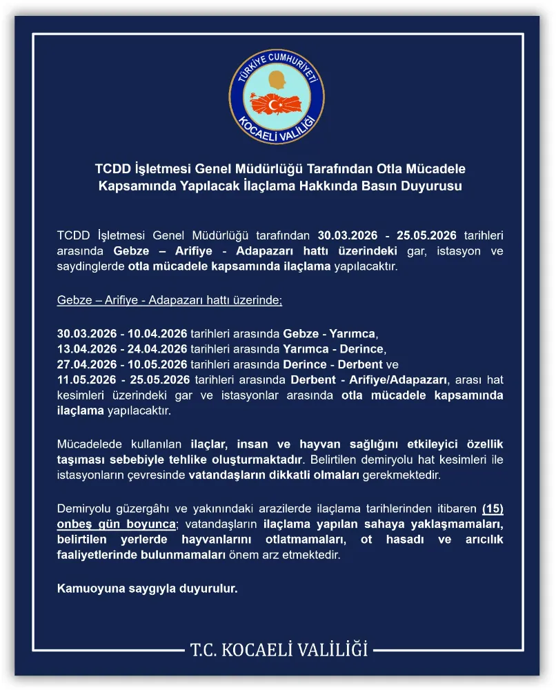 TCDD İşletmesi Genel Müdürlüğü Tarafından Otla Mücadele Kapsamında Yapılacak İlaçlama Hakkında Basın Duyurusu