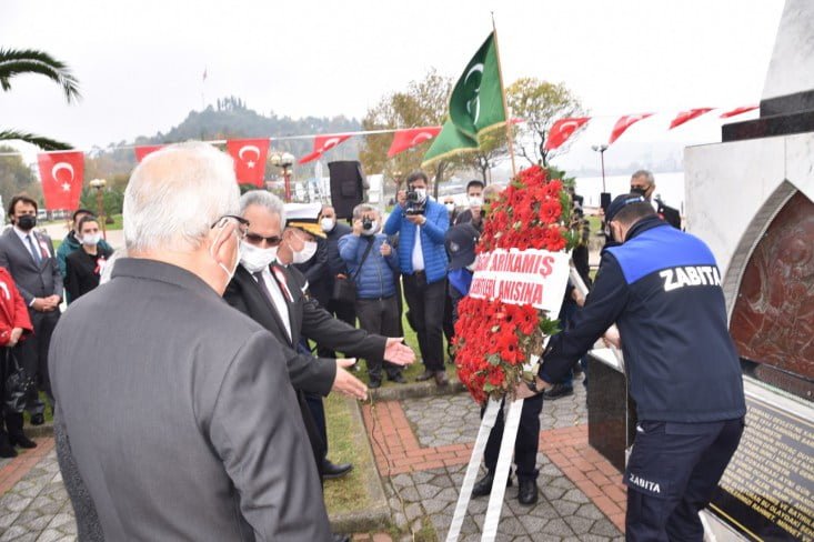 Konuşmaların ardından protokol anıt önünde hatıra fotoğrafı çektirdi, ardından Bezm-i Alem, Bahr-i Ahmer ve Mithat paşa gemilerinin battığı noktaya 3 adet çelenk bırakılması için Ereğli Askeri limanına hareket etti.